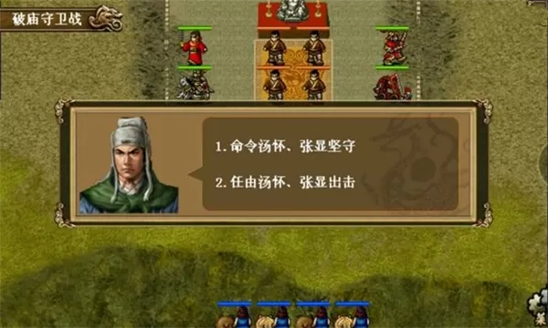 开场策略选择分兵:在第2回合,岳飞现身,邓成的能力下降;到第3回合,汤怀出现,同时靠近敌人,此时何六的能力会下降。紧接着,张显上场,何七的能力也会随之下降。