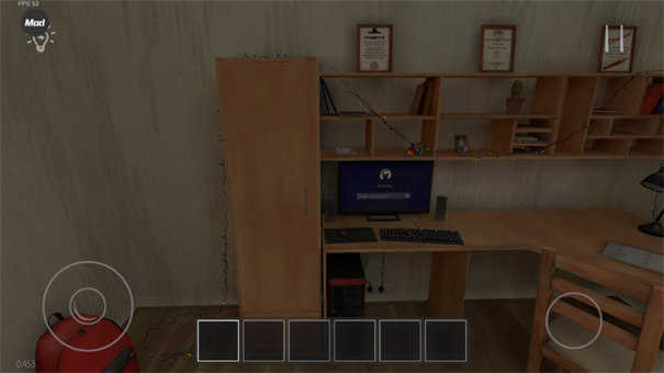1、当进入游戏后,我们会置身于自己的房间里,借助摇杆就能实现移动,点击物品便可展开交互,像开门、打开柜子这类简单操作都能完成。