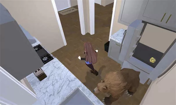 5、然后来到后面厨房打开冰箱,里面会有一只熊,开门后需要反向跑躲避;