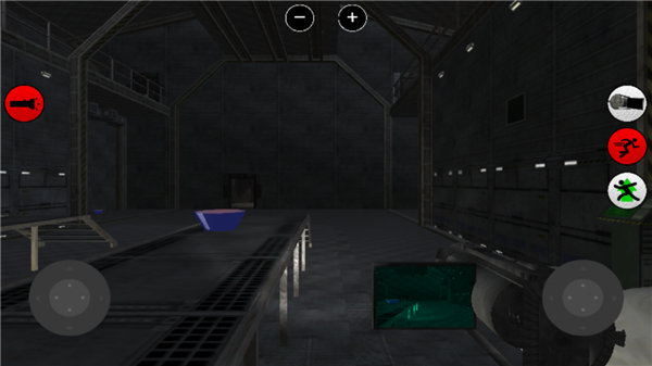4、正式进入游戏后,左边为控制方向健,右边则控制视角,其中的按钮依次为灯开关,摄像机放大,人物的跳和跑健。