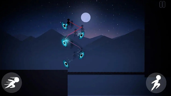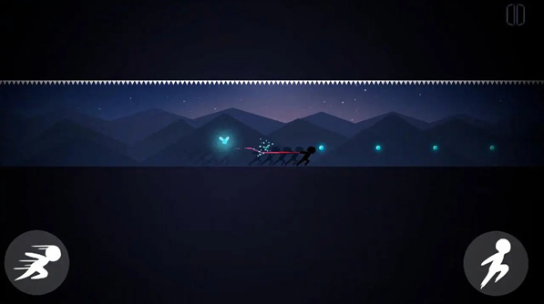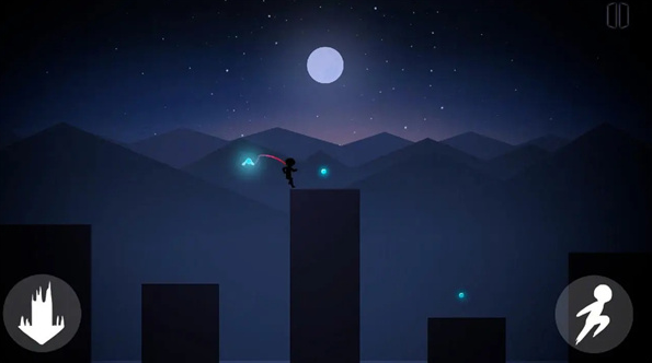 3、即可立即下坠,在跳跃的时候也可以点击屏幕中的闪避按钮,游戏地图内分布着很多的机关和光芒,玩家们需要收集游戏里的一切光芒,连续点击两次跳跃玩家们还可以进行二段跳;