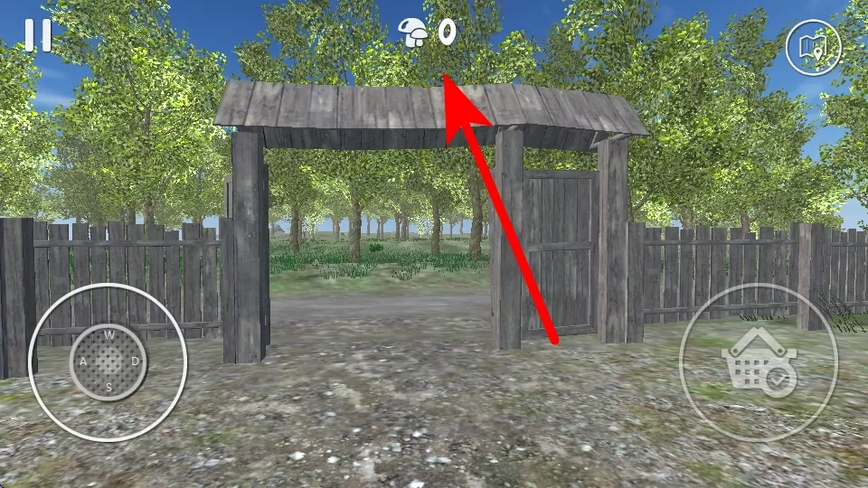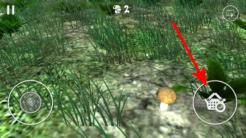 4、于游戏场景之中,当看见蘑菇后,点击右侧标有购物篮与对勾的按钮,即可收集蘑菇,与此同时,上方显示的蘑菇数量会随之增加。