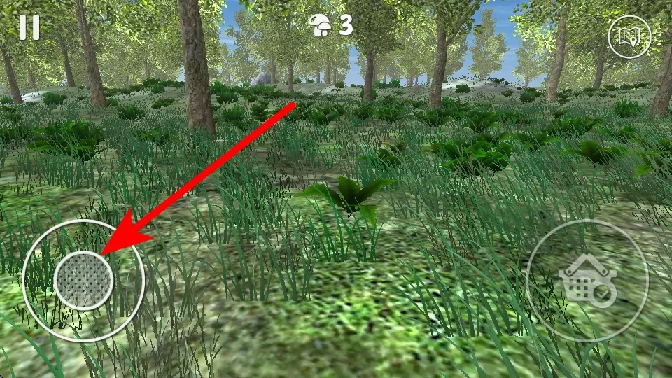 2、借助左侧的操控按钮,能够操控角色在草丛之类的场景里移动,以寻觅更多可供收集的物品。
