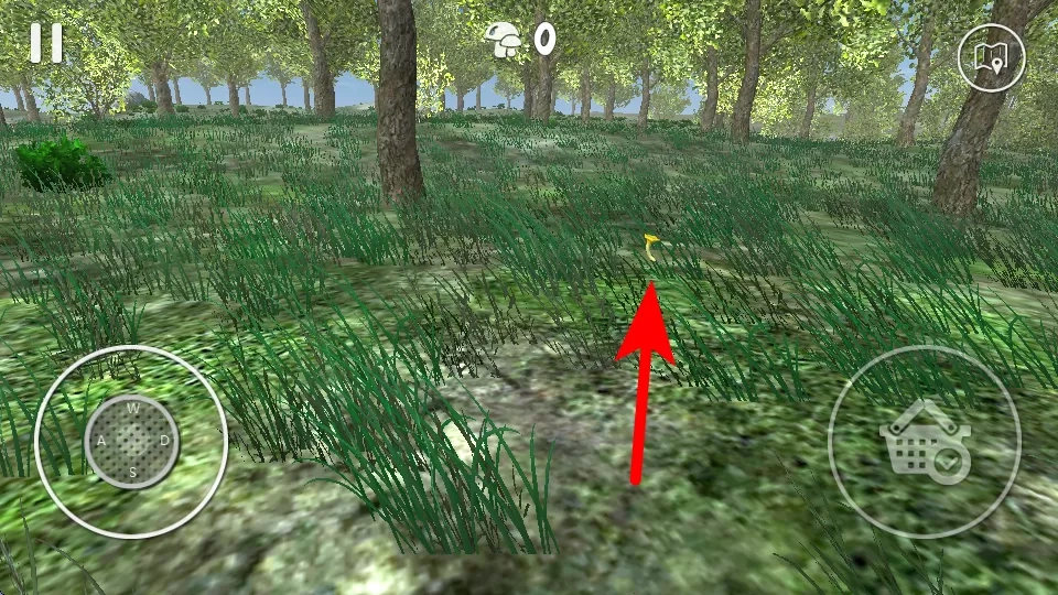3、当处于树林这类场景时,要留意草丛里的黄色小蘑菇,向着它的方向移动,这样就能持续收集蘑菇,推动游戏进程。