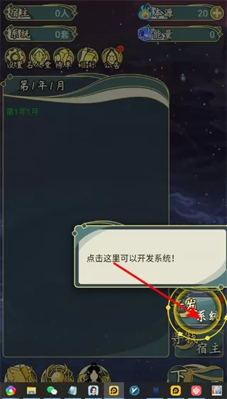 1、点击系统按钮,可进入系统开发界面,开发是提升游戏功能和资源获取能力的关键操作,完成系统开发任务。
