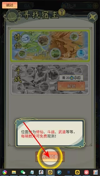 2、轻点观测位面按钮,便能探索修仙、斗战等各异的位面。每隔几日就能免费进行观测,借此获取全新的宿主与资源,推动进程。