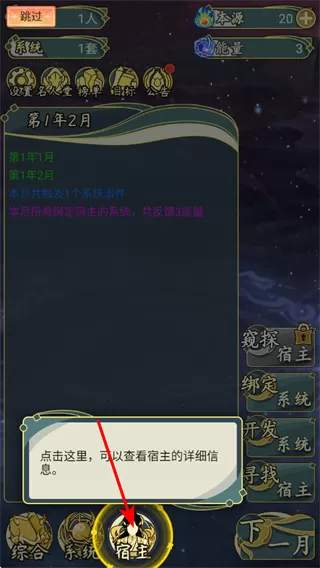 4、轻点宿主按钮,就能查看宿主的详细信息,深入了解宿主的属性以及发展状况,为后续发展策略的制定提供依据。
