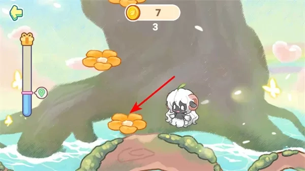 2、操控角色朝着橙色花朵所在位置移动,到达后即可触发互动,进而收集花朵资源。花朵作为游戏里的关键收集物品,收集它们能够解锁相关内容,提升角色能力。