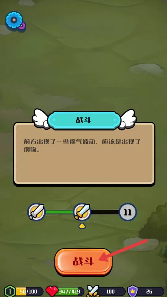 1. 轻点【战斗】按钮,随即投身与魔物的战斗,以此推动冒险的进程。