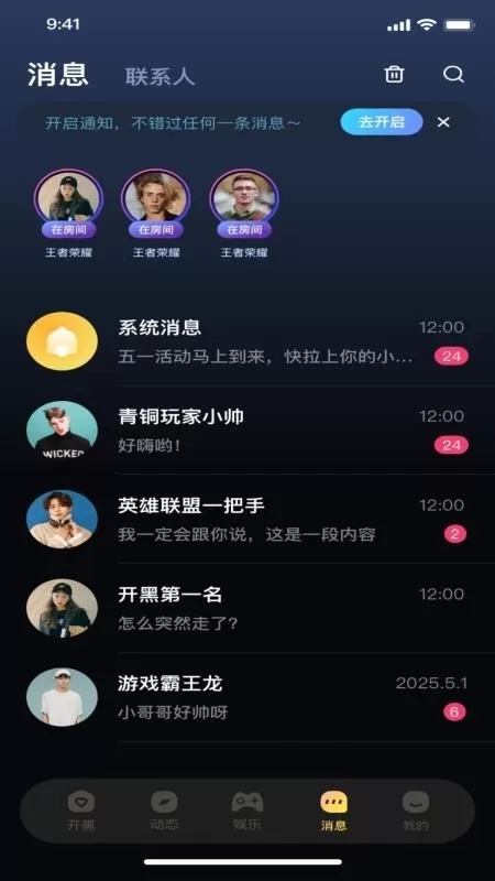 3、进入娱乐专区浏览热门语音房间推荐,选择感兴趣的房间点击进入参与互动。