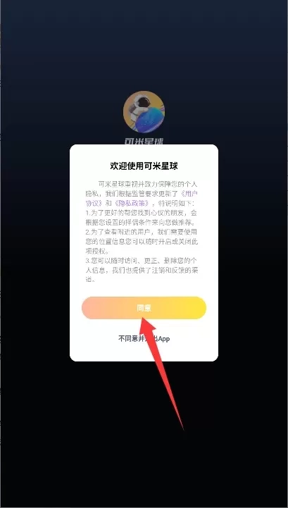 1、初次使用需阅读平台服务条款与隐私政策,确认后点击同意按钮进入登录界面。