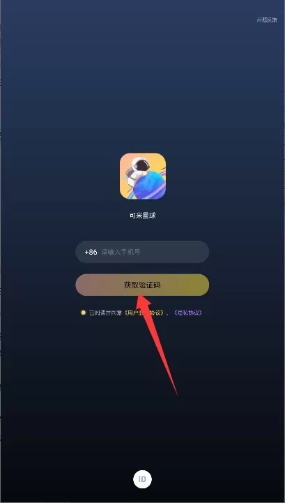2、在登录界面输入手机号,勾选同意相关协议后点击获取验证码并输入完成登录。
