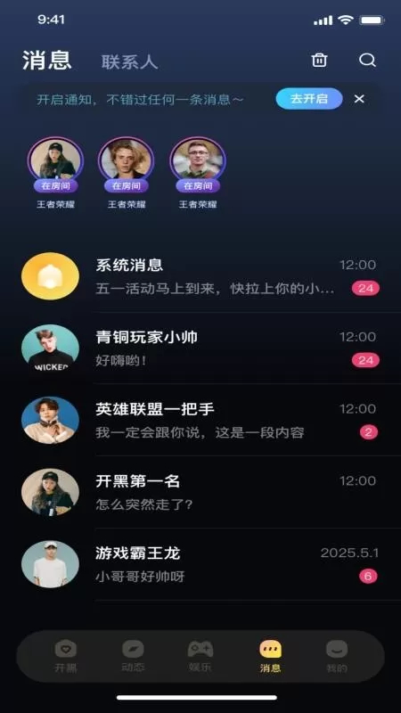 3、多元互动模式:除核心组队功能外,增设在线K歌、语音派对等多样化娱乐形式。