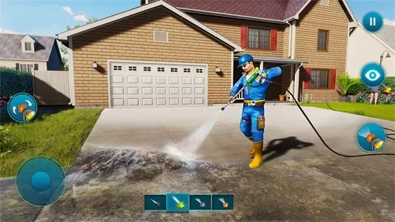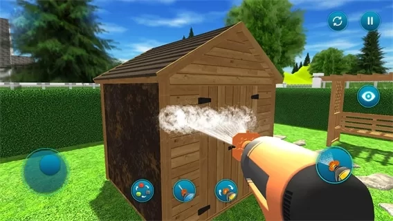 4、游戏里的房屋非常的脏,要选择好对应的喷头进行使用,可以将房屋上的淤泥清洗的非常干净。