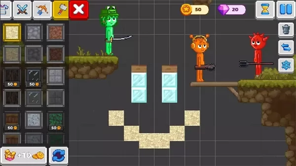 4、当进入搭建模式,你能够挑选不同方块来构建场景,通过调整角色与场景的互动布局,打造出别具一格的游戏环境。