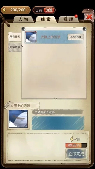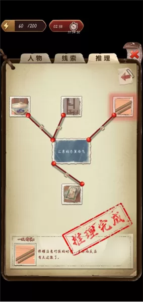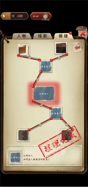 5、我们获取到了线索,能够在此处展开分析。待分析完毕后,将其添加到推理之中。分析线索需要消耗能量,而找寻线索则要耗费体力,不过过一段时间,能量和体力都会自动恢复。