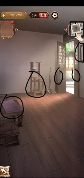 1、剧情结束后,就能在房间里寻找物品啦。先点击窗边,能获取脚印,在窗户那儿还能得到窗户。接着点击后方的柜子,在柜子上可拿到一瓶豆腐乳。