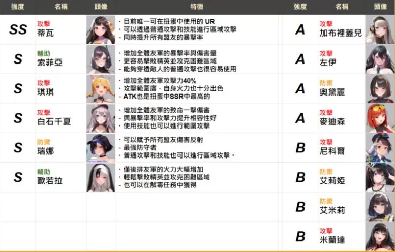 6、S 级强力 SSR 角色推荐解析 - 欧若拉 (SSR):强化后排火力输出,同时具备支援队友与突破敌人防线的功能;