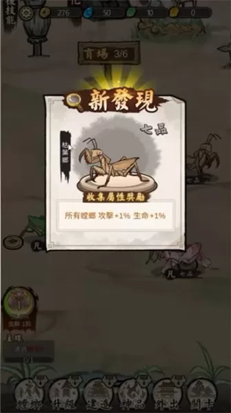 在游戏之中,涵盖了多达百种各异的战斗单位。玩家能够借助持续孵化的方式,去收集这些别具一格的螳螂角色。每一个角色都具备独有的属性与技能,适配于不同的战斗策略。于《极品螳螂》的奇妙世界里,尽情去尝试各种各样的组合,塑造出专属于你自己的最强力军团。