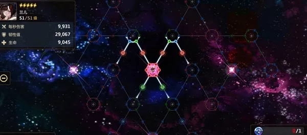 外面一圈节点是普通节点,红蓝绿三色分别对应攻击力、防御力和生命值。