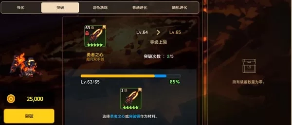 在角色满星之后,可以花费英雄水晶进行突破,突破能够解锁英雄的等级上限。