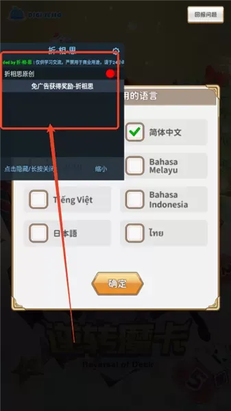 1、进入游戏时,我们要选择语言,在此选择简体中文即可。