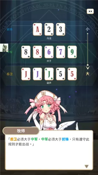 6、「出战时,会按照《前锋→中军→后卫》依序比牌,比牌获胜者,可以进行攻击。」