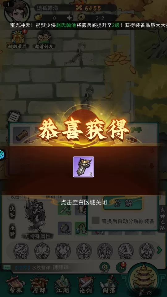 3、拆解多余装备,可获取铜钱及各类材料。