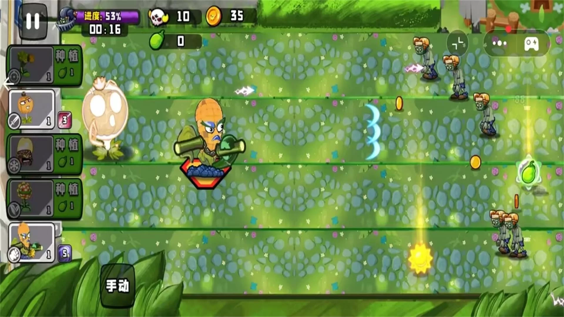 2.通过击败僵尸获取“阳光”这一关键资源。阳光用于种植新的防御单位或对现有阵容进行升级强化,考验着玩家的资源分配与时机把握能力。