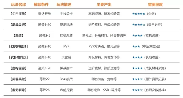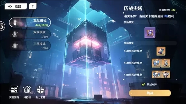 玩法描述:爬塔挑战,随着层数提升难度递增,考验阵容搭配。建议每日要推进至无法战胜为止,以获得最大化奖励资源。