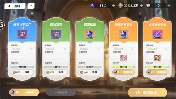 玩法描述:离线挂机任务,派遣幻灵执行任务获得奖励。单一任务持续时间1-2小时不等,每日需要合理安排派遣任务和上线领取时间。