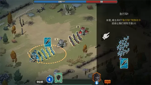 5、若双方同时对同一地堡展开争夺,此时可发动“急行军”进行快速突袭,率先占领地堡,并凭借地堡的防御加成,抵挡后续敌军的反攻。