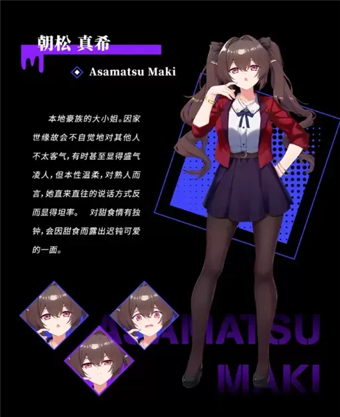 本地豪族的大小姐。因家世缘故会不自觉地对其他人不太客气,有时甚至显得盛气凌人,但本性温柔,对熟人而言,她直来直往的说话方式反而显得坦率。对甜食情有独钟,会因甜食而露出迟钝可爱的一面。