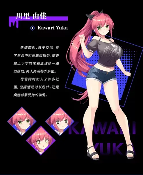 热情四射,善于交际,在学生会中担任高层职务。或许是上下学时常和亚理纱一路的缘故,两人关系格外亲密。尽管同时加入了许多社团,但据活动时长统计,还是桌游部最受她的偏爱。