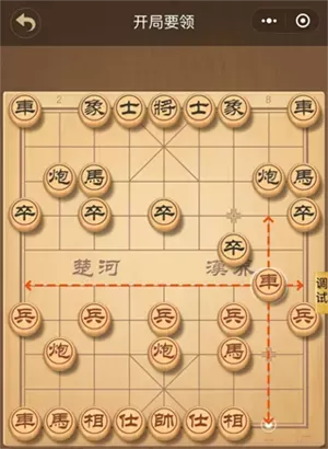 1、尽快出动大子,特别是车。切记频繁走动某一个子,不利于主力的开动,影响布局的速度。