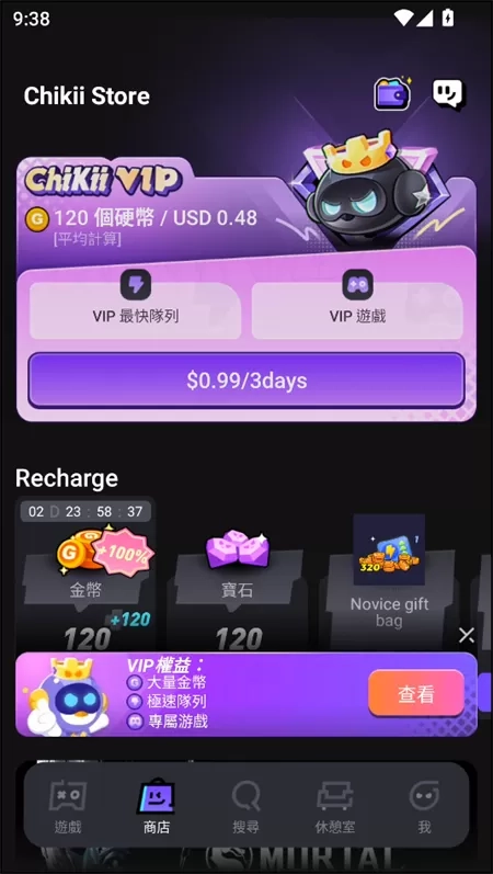 2、进入商店界面,能进行游戏购买、会员开通等相关操作。