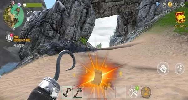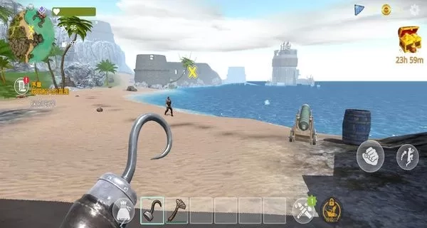 1、操控角色在荒岛场景中自由移动,探索沙滩、丛林等区域,前往任务目标地点,逐步推进游戏任务的完成。