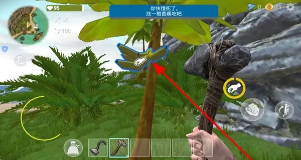 4、在荒岛丛林中寻找香蕉树,获取香蕉,解决角色的饥饿问题,维持角色的生存状态,以便继续冒险。