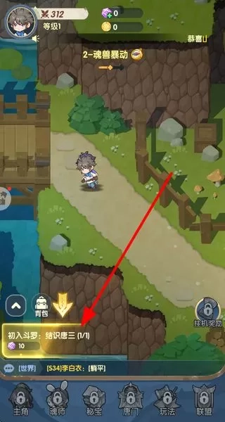 1. 依照主线剧情任务的指引,操控角色穿梭于满是斗罗元素的场景,完成各式各样丰富的剧情任务,进而解锁新区域。
