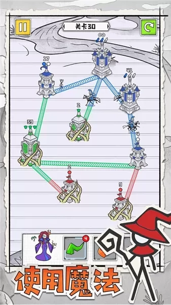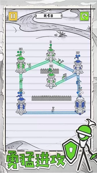 6、一旦城堡达到高分,便会把所接收的火柴人士兵派遣出去。