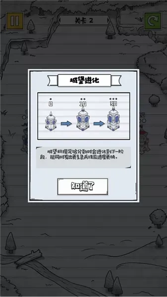 4、如图所示,城堡积攒足够分数时会进化到下一阶段,能同时发出更多条兵线且速度更快。