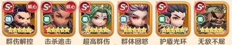阵容说明:刘备提供护盾和光环提高队伍攻守能力,同时张飞和曹操双无敌盾的机制保护输出武将,典韦和关银屏超强群体输出能力搭配曹操群体回怒,能频繁打出高额群体伤害压低血量,再搭配关羽超强收割能力,推图效果绝佳。