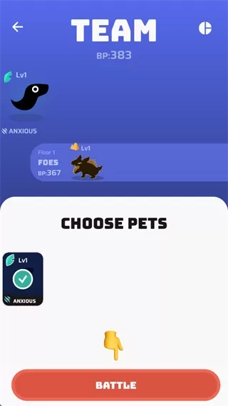 4、选择出阵的宠物,随后点击屏幕下方的“BATTLE”。