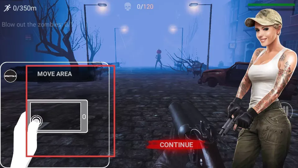 2、在可移动区域通过操控角色移动,来躲避僵尸的攻击,与此同时,还要寻找合适的射击时机,以此推动游戏进程。