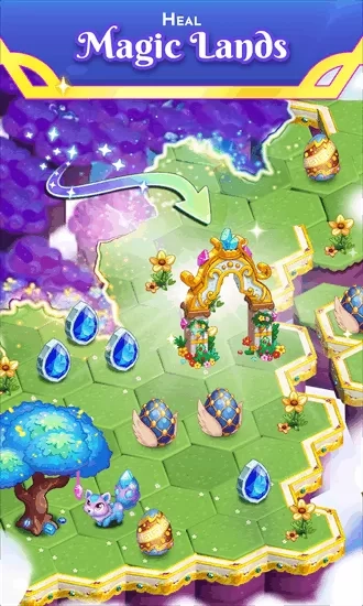 迈达斯合并(Midas Merge)是一款趣味十足的合并消除类游戏。在游戏里,玩家要完成各式各样的合成任务,以此获取奖励,进而装点自己的花园。游戏画风精美绝伦,玩家还能够解锁全新生物并加以培养,而且操作体验十分流畅。 然而,一场突如其来的意外,致使国王迈达斯的魔法皇冠被打得七零八落,黑暗仿若潮水般迅猛地吞噬了这片土地,就连那些可爱奇妙的生物也没能逃过一劫。 你是否能够在各个区域巧妙地合并物品,让美丽再次降临这片大地,找回失踪的皇冠宝石呢?迈达斯、莉亚以及众多生物,都满心期待地盼着你去拯救他们的家园!