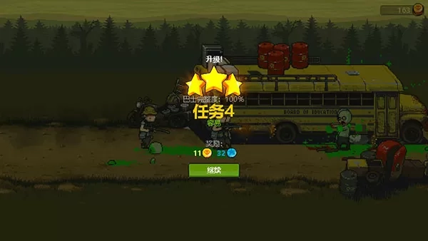 2、第二大关,难度上来了,跑尸增多了,拿三星有困难,需要记住僵尸的路线,掌握对投弹兵的使用方法,实在过不去就卖车(损失巴士血量,让卡尔杀僵尸)