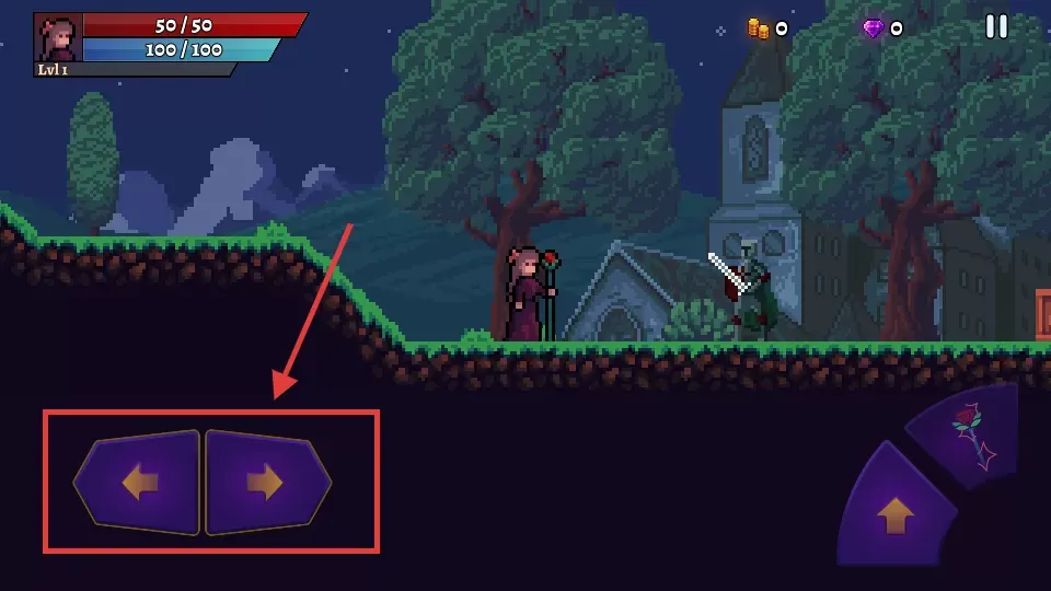 1. 通过左右方向键来控制角色移动,让角色靠近敌人,进入战斗区域,以此为后续的攻击创造条件。