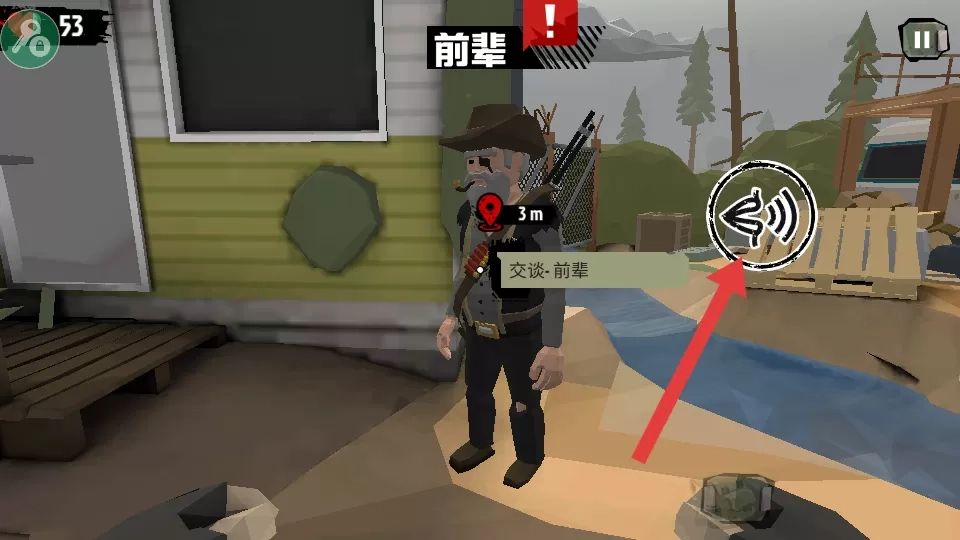 2、靠近“前辈”后,点击右侧交互图标,触发【交谈-前辈】的对话任务。