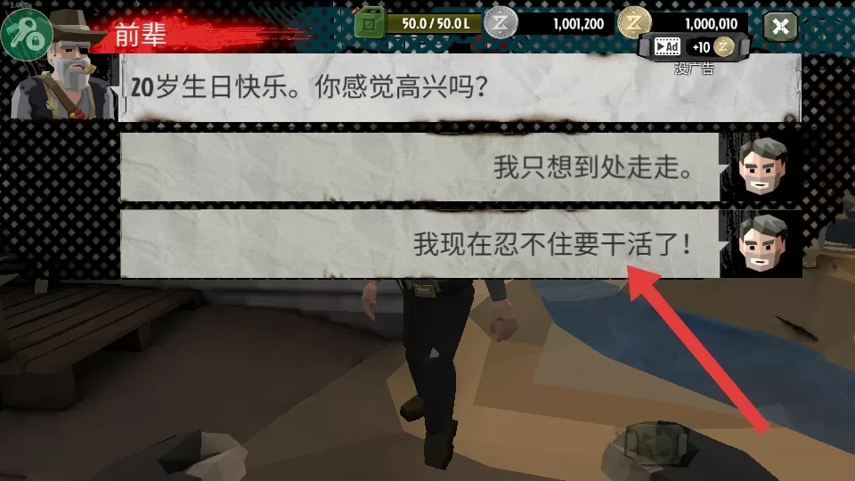3、在对话选项中选择【我现在忍不住要干活了!】,完成与“前辈”的交流,推进剧情。