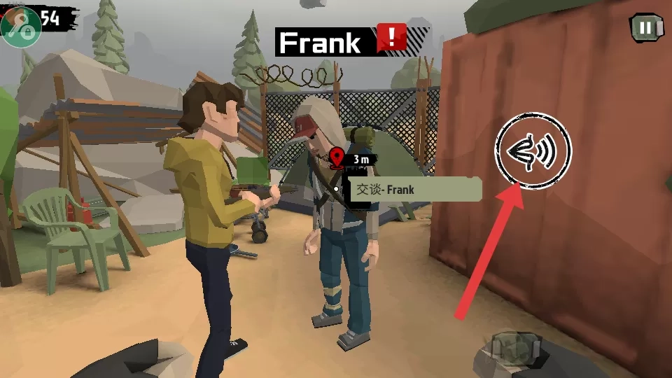 4、随后找到NPC“Frank”,走近它后点击右侧的交互图标,进行【交谈-Frank】操作,以继续解锁新任务或剧情。